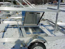 trailer. The lid has a center hinge which permits entry from both sides of